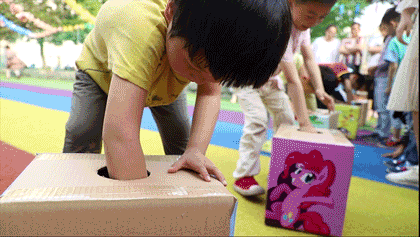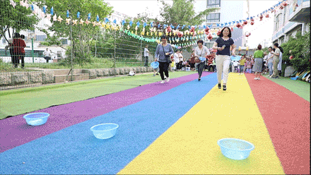 此次活动最具特色的环节,便是由自行设计的爱牙游戏“零食大作战”了。活动场地内放置6个拥有同样的食物及护齿产品的箱子,由小朋友从中摸出对牙齿有益的物品传递给父母(父母在一定距离的线外等候),父母接到物品后跑回终点倒出物品再拿空篮跑回线外等候。通过此规则依次往返,限时1分钟内选到正确物品数量最多的家庭获胜。根据最终结果选出一、二、三等奖,其他剩余家庭全部获得爱牙家庭奖。