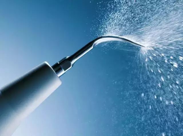 而超声洁牙机则通过高频率震荡传导至特制工作尖,将能量集中在工作尖并释放,对顽固坚硬的牙结石产生较大的冲击力,并将其震碎,使其从附着的牙面脱落。同时,超声震荡产生的水雾将环绕在工作尖的周围,将牙结石的碎屑冲洗殆尽。