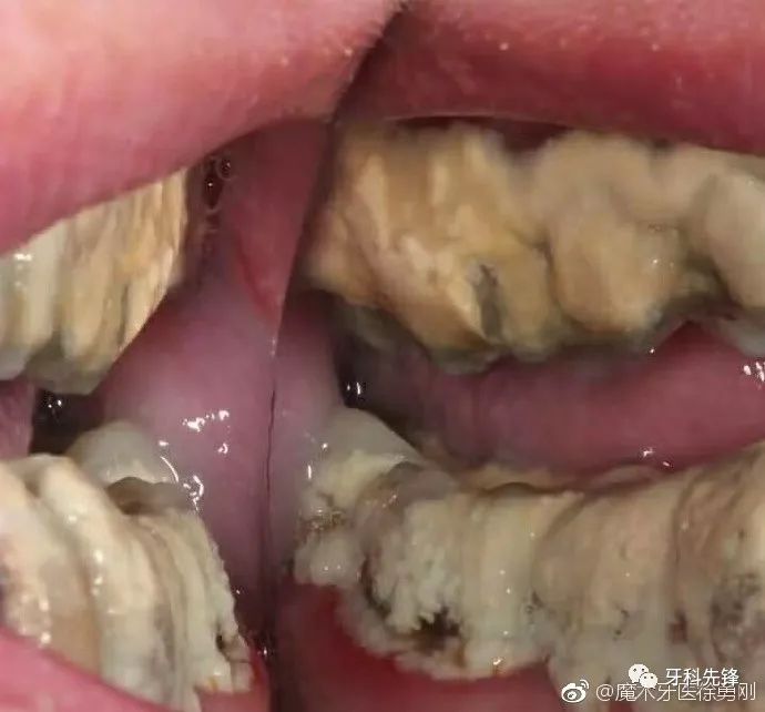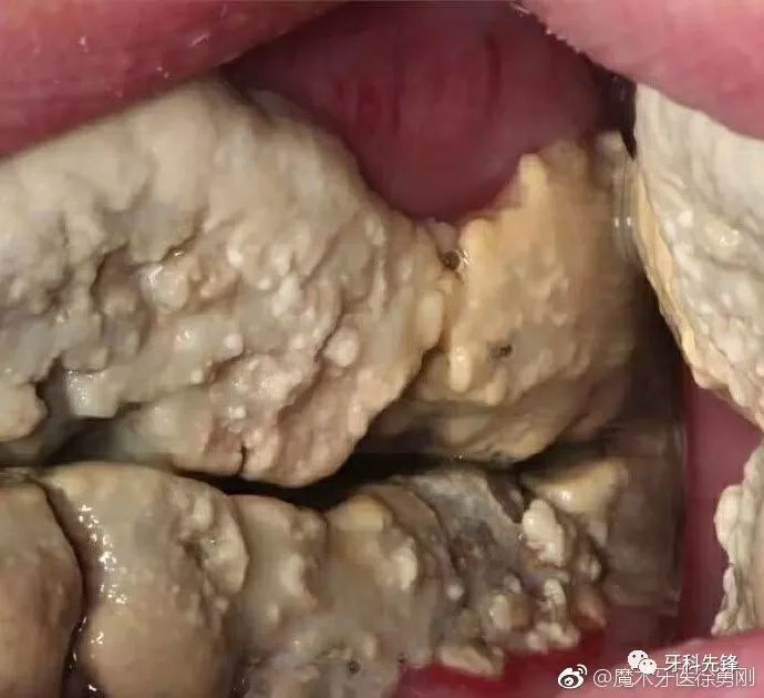 这已经不是单纯的牙结石堆积,已经堆积成钟乳石了吧!