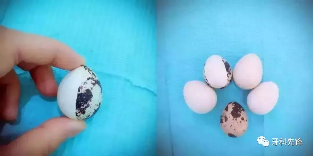 ▲这是洁牙师用蛋壳进行练习 , 表面的色素沉积被震荡了下来, 蛋壳表面光洁透亮,没有任何破损, 所以洗牙不会损伤到您的牙齿哦。