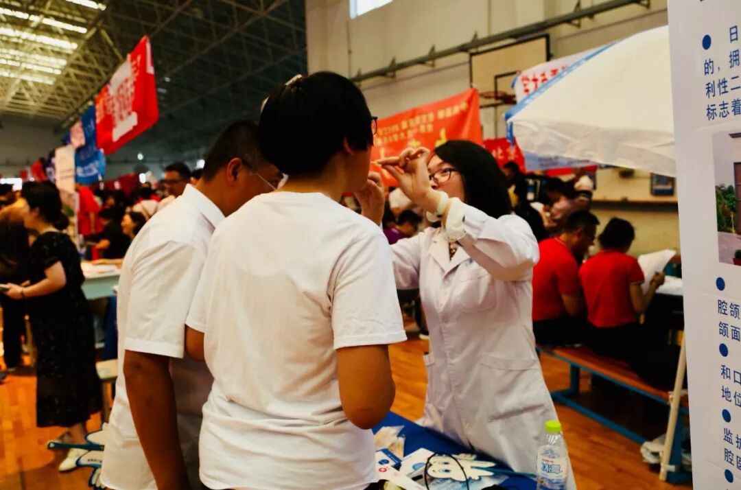 现场为前来咨询的考生们免费检查口腔