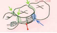 下图中彩色阴影和“→”部分是需要改变牙刷方向特别注意清洁的部位。