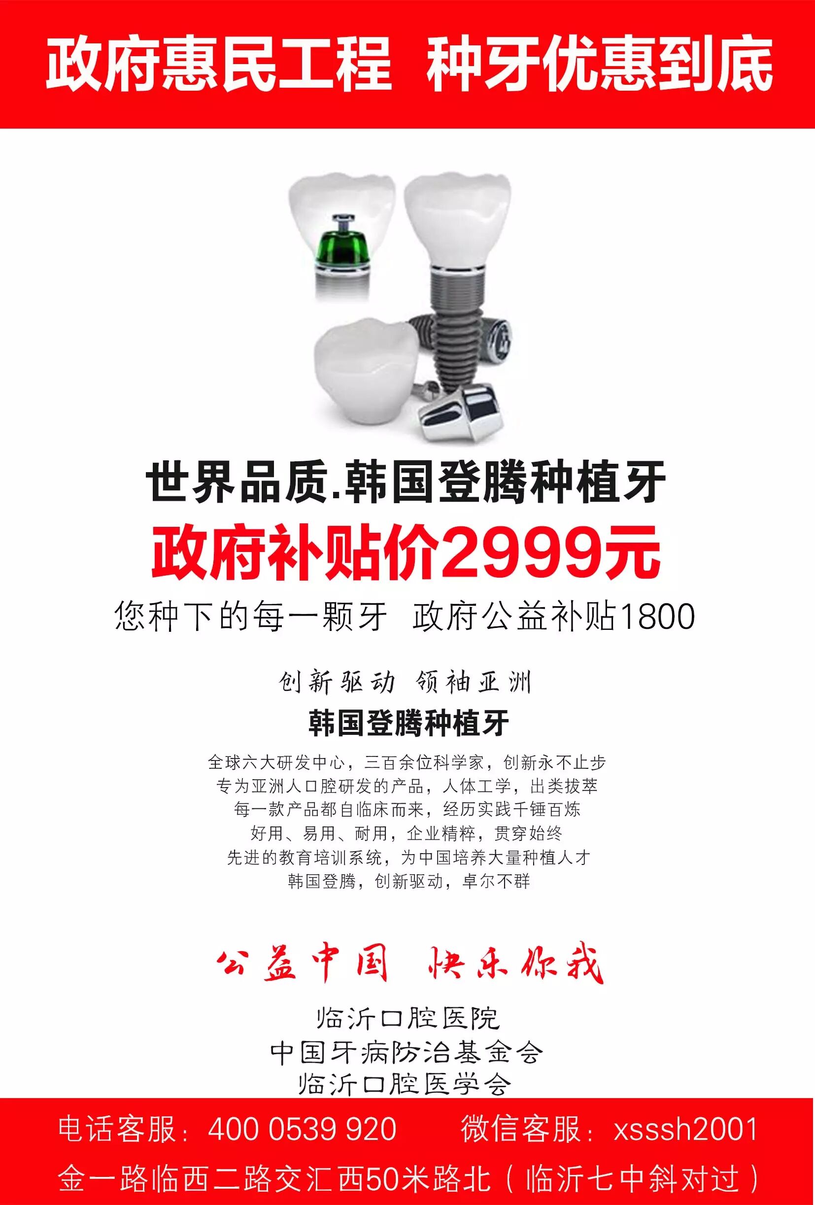政府惠民补贴:韩国登腾种植牙2永康市99