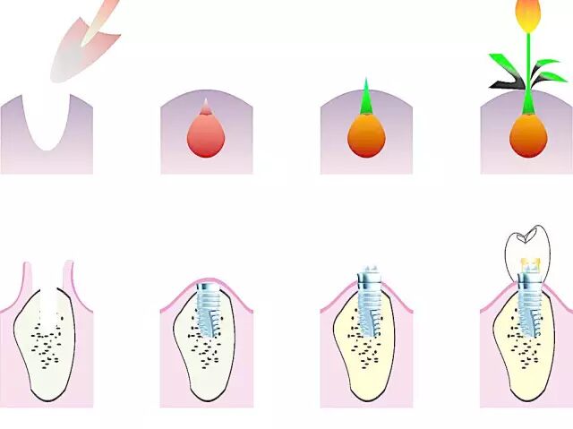 种植牙和真牙一样包括牙根和牙冠两个部分,种植体(即人工牙根)用生物相容性很好的纯钛金属制作而成,与牙槽骨通过骨结合连接在一起,十分坚固,可象真牙一样扎根在患者的口腔里,根深蒂固,所以稳固。