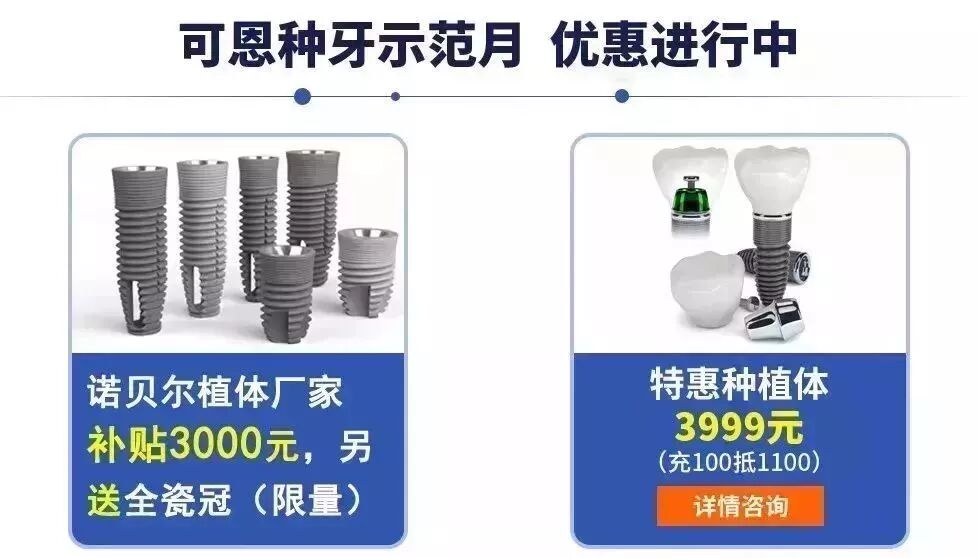 牙美遮百丑,缺牙毁所有 眼睛小,皮肤差 美颜相机可以帮你 可是缺一颗牙 估计什么美颜黑科技也拯救不了 万一缺了门牙更是糟糕 都不敢出门了 缺牙不仅影响颜值,还会造成 吃饭咀嚼无力,增加肠胃负担;邻牙倾斜,对牙伸长;牙周病、龋齿问题多发;给中老年人带来一些身体疾病。 长时间不修复,会导致邻近两颗牙齿往中间挤,变得倾斜,缺牙位置失去支撑会导致对牙伸长,进而造成牙齿松动、牙龈萎缩。 种植牙是解决缺牙问题的较好方法,先进的设备、高品质的种植材料和技术精湛的种植专家,才能让种植牙的安全性更高、种植效果更有保障。 3月16-3月17日 潍坊可恩种植牙品质见证日 寻找缺牙的你! 活动时间 2019年3月16日-3月17日 活动地点 ①诺贝尔植体厂家补贴3000元,另送全瓷冠(限量) ②特惠进口种植体3999元 此活动不与其他优惠活动同时享用 长按二维码 报名参加 长按二维码预约 长按二维码 评估种植费用 其他牙齿问题,点击“阅读原文” 申请初诊9折特惠! 地址: 潍坊市奎文区胜利东街4759号(新华书店东临)