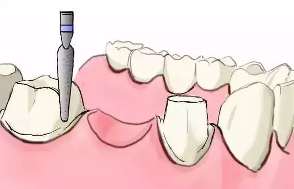 在上面套上烤瓷冠,俩边的牙好像桥墩一样,抬起中间的缺牙