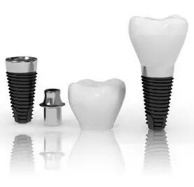 在牙床上植入一个人工金属“牙根”,待牙根与牙床稳固之后,再在上面装上一个烤瓷牙。种植的牙齿可以基本取代原本真牙的功能,不需要依靠别的牙齿。