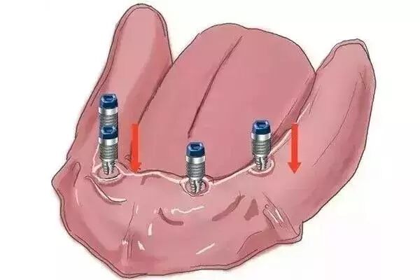 单颗牙缺失 植入种植钉,种植牙就是缺哪颗种哪颗,不会伤及健康的邻牙。在缺失牙的牙槽窝植入种植钉,再在上面镶烤瓷牙就好了。 多颗牙缺失 在俩边的牙槽窝植入种植钉 将烤瓷牙牢固的套在种植钉上 全口缺失 过去的人,牙都没了,就带全口假牙,那么大一个塑料托放在嘴里,即不牢固又不舒服。有了种植牙,也许这些问题都能解决了。 一颗牙也没有的下牙床 植入四颗种植钉 种植钉安装上修复基台 修复基台连接上球帽固位装置——准确的说是“球”,“帽”在总义齿的组织面上。球帽固位装置与种植钉是如此连接的。 总义齿组织面与“球”协同工作的“帽”是长这样的 球和帽之间的细节图 往下一按,听到“咔啪”一声,球帽结合。其实和衣服上的按扣是一个原理,简单极了。球帽对准,准备组合。 听,随着“咔啪”一声,组合完毕。看,这种种植牙是不是即精密又舒适呢?! 有任何口腔问题,欢迎微信后台咨询!