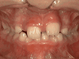 开合,即使闭嘴,上下牙齿也不接触,留出空隙,经过矫正后的牙齿是这样的~