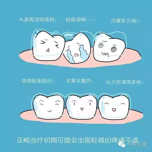 正畸治疗开始1至2周内有不适感均属正常现象,不必太过担心。矫治器初次戴用后及每次复诊加力后,牙齿出现轻度反应性疼痛、酸胀、不适或松动等,属于正常反应,一般在3至7天内减轻或消除。如有其它严重不适,请与医生联系。